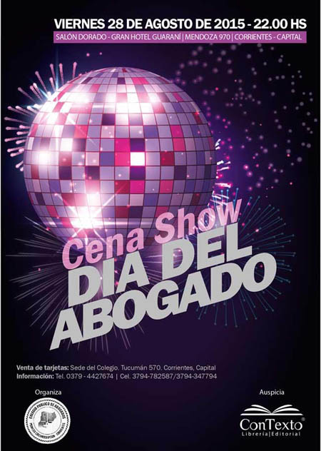 En tanto que a partir de las 22 del viernes 28 y en víspera del Día del Abogado se realizará la tradicional Cena Show, en el Salón Dorado del Gran Hotel Guaraní, por calle Mendoza 970.