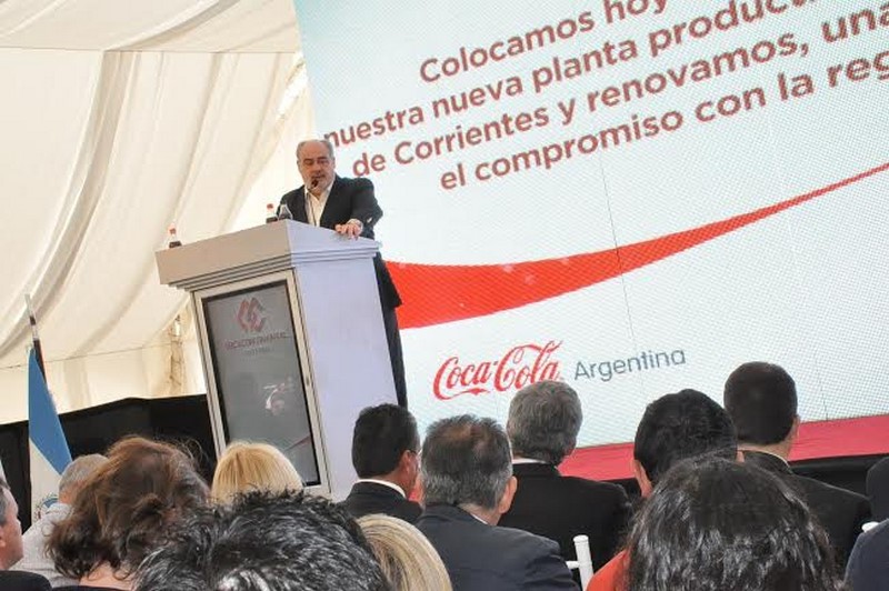 COLOMBI Y DIRECTIVOS DESCUBRIERON LA PIEDRA BASAL El proceso de industrialización de la provincia avanza con la instalación de Coca Cola  FOTOS El gobernador Ricardo Colombi destacó hoy que el descubrimiento de la piedra basal para la instalación de la planta de Coca Cola en Corrientes, está Inmerso en el proceso de industrialización que viene ejecutando el Gobierno Provincial, aportando seguridad jurídica y los medios de infraestructura necesarios para captar el interés de inversiones de empresas productivas. Durante el acto efectuado esta mañana, se puso de relieve que la firma tiene 11 plantas en Argentina con 15 mil empleos directos y con 3.000 mil millones de pesos que aporta anualmente al PBI. Esta planta se sumará a otras tres y 25 centros de distribución en 10 provincias del Norte argentino. En un día histórico para la provincia, se llevó a cabo este viernes la colocación de la piedra fundamental de la nueva planta embotelladora de Coca Cola en Corrientes, en un acto desarrollado en el flamante predio que la empresa posee sobre ruta nacional 12, en cercanías de la Granja Yatay, a unos 18 kilómetros del centro de la ciudad capital. De esa manera se materializa la reinstalación en Corrientes de su planta embotelladora, a instancias de las condiciones ventajosas que ofrece actualmente la Provincia tanto en lo que respecta a la estabilidad socio-económica, como en lo que hace a la seguridad jurídica y nivel impositivo. Son más de 9 millones los consumidores de los productos de Coca Cola en el Norte del país; la inversión aproximada en esta planta en Corrientes será alrededor de 650 millones de pesos, se realizará en distintas etapas y al final del proyecto generará más de 350 empleos, con tecnología de vanguardia en la industria del embotellado. “Hemos venido para quedarnos, que tenemos el deseo de ser parte de esta comunidad, hacerla crecer, desarrollarse y hacerla más próspera”, afirmaron los directivos de ARCA Continental. Al pronunciar sus palabras, el gobernador Ricardo Colombi agradeció la presencia de los directivos y “por haber elegido a Corrientes para hacer esta importantísima inversión de radicación industrial”. Mencionó que hace dos años iniciaban el proyecto y hoy se hace realidad. Dijo que años atrás nuestra provincia contaba con dos plantas de Coca Cola, una en Goya y otra en Corrientes, que “por esas cosas del destino nos quedamos in las dos”. Por eso destacó que hoy “podamos estar recuperando con la radicación de esta empresa; en una provincia que está ubicada estratégicamente en lo que es el MERCOSUR. Limitamos con tres países, Paraguay, Uruguay y Brasil, tenemos nuestro río que indudablemente va a facilitar muchas cosas; comunicaciones, nuestro aeropuerto que acabamos de habilitar nuevamente y también hicimos mucha inversión en energía”. Por ello afirmó el gobernador que la instalación de Coca Cola “va a despertar el interés de muchos inversores en Corrientes”, sabemos que esta radicación industria va a permitir que muchas más empresas puedan venir a esta parte del país. Lo necesitamos, por eso con un trabajo articulado entre el sector privado y el público, gobierno local y gobierno provincial, tenemos que ir avanzando en políticas que brinden las posibilidades para radicar más industrias como la que hoy estamos viviendo”. “Inauguramos hoy un camino muy importante y esto que era un sueño hoy se hace realidad. Corrientes es una provincia en la que está por hacer, lo estamos haciendo todos juntos, cuenten con nosotros y más allá de la mano de obra que va a generar, de la cuantiosa inversión y el trabajo directo e indirecto; lo importante es que recuperamos para Corrientes a una empresa líder mundial en el mercado de la industria gaseosa y es una ejemplo para todos”. En otros pasajes de su alocución rescató conceptos vertidos por los señores Ponte y Murphy de Coca Cola indicando el valor de “la decisión empresarial de invertir en la provincia nos hace bien como provincia y nos proyecta en un contexto nacional e internacional muy importante”; como asimismo la confianza en las personas que trabajan en la empresa, hay muchos correntinos, y que haga parte de la radicación al sector gremial que agrupa a los trabajadores. El otro aspecto al que refirió el mandatario se vincula al medio ambiente y a la responsabilidad social y empresarial de ARCA Continental . “Estamos orgullosos de que hayan sido tomados estas cuestiones por parte de la empresa porque en estos tiempos que estamos viviendo con estos cambios climáticos preservar el medio ambiente es muy importante y lograr que toda el agua que ocupe la empresa pueda ser recuperada demuestra ese interés”. También el doctor Colombi ponderó la gravitación de que la empresa esté con la sociedad y no sólo se habla de un proyecto económico, “que es lógico que así sea”, sino que esté junto a los sectores de la comunidad, “con nuestro niños, nuestros jóvenes, con el deporte, con la cultura, con la educación”. El acto Estuvieron presentes: el gobernador, Ricardo Colombi, el presidente de Coca Cola de América Latina del Sur, John Murphy, el gerente general de Coca Cola de Argentina, Michel Davidovich, el intendente de Capital, Fabián Ríos, los directores generales de Arca Continental Sudamérica y Argentina, Guillermo Aponte y Juan Alba Loaiza, respectivamente, ministros, secretarios y subsecretarios del gabinete provincial, interventores de entes autárquicos, legisladores nacionales y provinciales, empresarios, representantes de los sindicatos de aguas gaseosas y de camioneros, de cámaras de industrias, personal de nueva planta e invitados especiales. Con una inversión de 70 millones de dólares, Arca Continental inicia la construcción de la nueva planta de bebidas en Corrientes, con el objetivo de atender las crecientes necesidades del consumidor argentino en la región norte del país. Con cuatro líneas