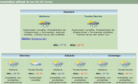 Las lluvias comienzan hoy y continuarán hasta el domingo, las mínimas rondarán en 16 grados y las máximas llegarán a los 34. Hasta el momento, nos espera un fin de semana pasado por agua.