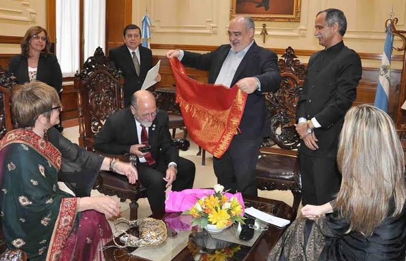 En el encuentro, Colombi y el Embajador de la India intercambiaron algunos presentes, y el primero entregó a Amarendra Khatua una carpeta con la documentación correspondiente que lo declara “huésped de honor” mientras dure su estadía en la Provincia. Además dialogaron por unos minutos, donde el Gobernador explicó a los presentes que ya se encuentra todo listo para las 3 jornadas que se vienen en lo que respecta a las actividades que formaran parte del evento dedicado al país asiático.