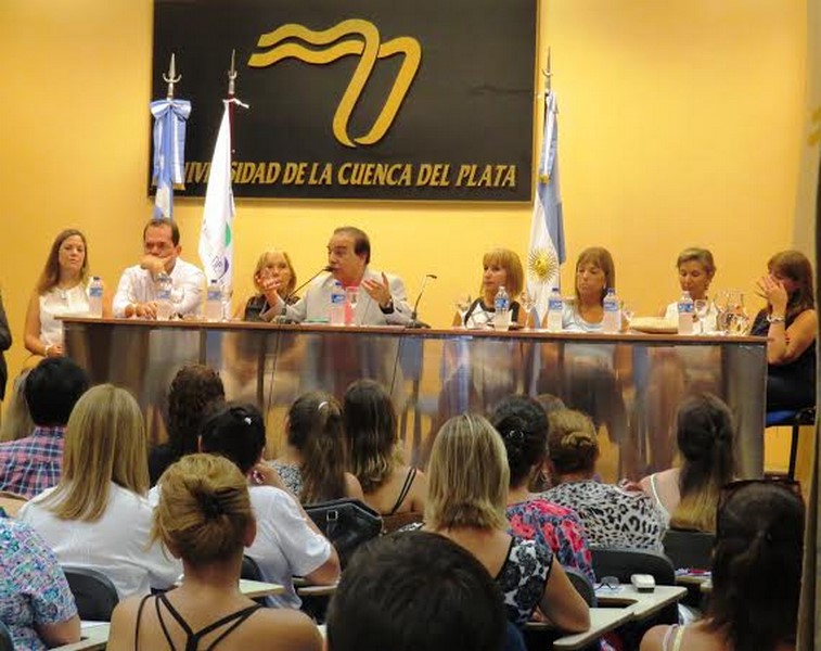 UNIVERSIDAD DE LA CUENCA DEL PLATA Reunión informativa del Rector Rodríguez con tutores 2016  A salón lleno, se realizó la reunión informativa para padres y tutores de los ingresantes 2016. “Este lugar es el de la creatividad y el de la ciencia, y nuestro modelo pretende afianzar y acompañar a los futuros profesionales para optimizar sus conocimientos disciplinares”, afirmó el Rector Mgter. Ángel Rodríguez. La máxima autoridad universitaria estuvo acompañado por la Vicerrectora Académica, Lic. Ana María P. de Maló, la Vicerrectora Administrativa, Cra. Patricia Gutiérrez, y los Decanos Organizadores de las cinco Facultades de la UCP. La apertura estuvo a cargo del Rector Rodríguez, mientras que el desarrollo del proceso académico que propone la UCP lo realizó la Vicerrectora Maló. Finalmente, la cuestión arancelaria y administrativa, estuvo a cargo de la Vicerrectora Gutiérrez.