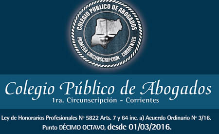 Regirá a partir del 1º de marzo próximo. El valor está establecido según Ley de Honorarios Profesionales Nº 5822, artículos 7 y 64 inciso “a”. Acuerdo Ordinario Nº3/16, Punto Décimo Octavo, desde el 01/03/2.016