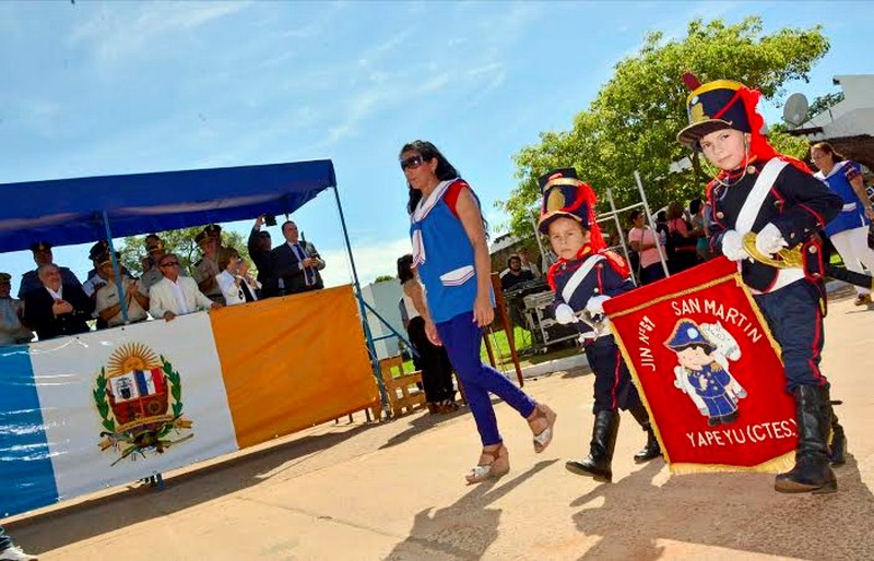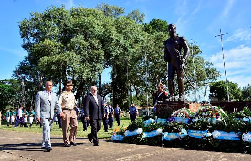 Luego de los discursos oficiales, los representantes de los distintos organismos presentes realizaron ofrendas florales al pie del busto de San Martín, emplazado en el predio. Seguidamente se adoptó el dispositivo de desfile, en el que participaron alumnos y docentes de escuelas de la zona, asociaciones civiles, agrupaciones tradicionalistas y fuerzas de seguridad. De esta forma concluyeron los festejos por el 238° natalicio de San Martín, comenzando en la víspera con un festival chamamecero a la vera del río Uruguay.