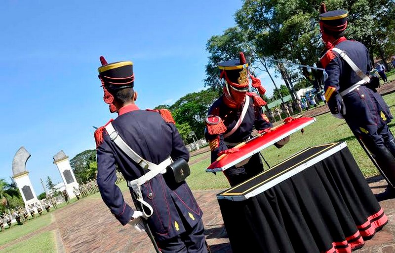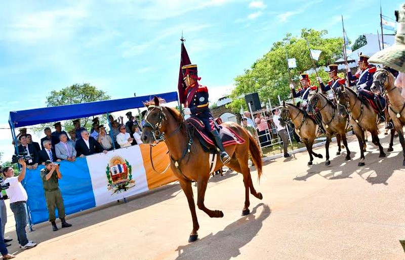 Sol pleno y calor no fueron impedimento para cumplir los actos de rigor con los que se conmemora este histórico hecho. A las 9 en punto, el jefe de la Agrupación “Libertador”, mayor Oscar Alejandro Orbeti presentó los efectivos formados al comandante de la Primera División del Ejército General de Brigada, Guillermo Tavernero, quien invitó al gobernador Colombi y al intendente Barrios a realizar la revista de tropas.
