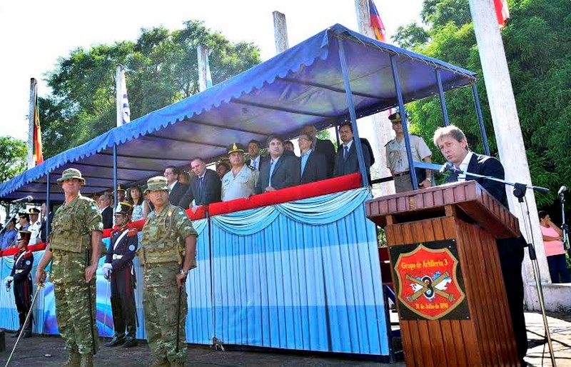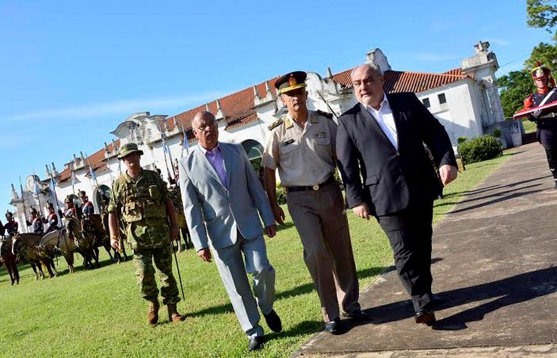 Tras este ritual militar, consistente en recorrer y observar de cerca a los efectivos de las distintas fuerzas, Tabernero invitó a Colombi y Barrios a saludar a la Agrupación “Libertador”, la cual respondió con ímpetu, mediante un visceral “buenos días”.