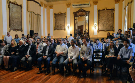 El titular del HCD y concejales estuvieron presentes en el acto en Casa de Gobierno. La medida alcanzará a todos los trabajadores del Municipio capitalino, incluyendo a los del Concejo.