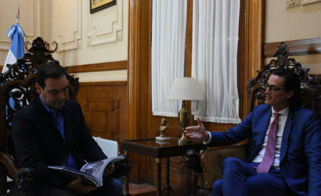 EN GOBERNACIÒN Periodista francés con el gobernador Valdés  Finalizada la entrevista con los empresarios chinos, el gobernador Gustavo Valdés recibió en el despacho oficial de la Gobernación al periodista francés Leandro Slovinski, director editorial de The Investor, firma que tiene su sede central en París y delegaciones en Dubait, New York y Shangai. Interesados en tomar conocimiento de las actividades, producción, cultura, de nuestra provincia, el periodista sostuvo un diálogo fluido con el doctor Valdés, quien a su vez destacó las enormes posibilidades que ofrece nuestra provincia. Tanto en el área productiva como en lo que hace al turismo, con su fauna, flora, especialmente Los Esteros del Iberá; la enorme expansión de las áreas forestadas, su carnaval, Chamamé y toda manifestación cultural.-
