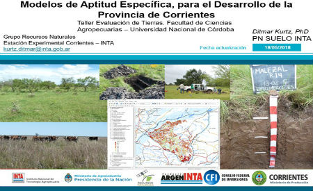 Taller en Córdoba Corrientes a la vanguardia en el trabajo de cartografía y evaluación de suelos  El taller contó con la participación especial del Dr. David Rossiter, profesor emérito de la Universidad de Cornell – USA, investigador del Centro de Información Mundial de Suelos (ISRIC) en la Universidad de Wageningen, Holanda y especialista en Evaluación de Tierras, Cartografía de suelos y Taxonomía. Durante los días 21 al 23 de mayo se realizó en la ciudad de Córdoba el taller de capacitación "Evaluación de tierras", ocasión en la que se presentó el trabajo de cartografía y aptitud de tierras encarado por el Ministerio de la Producción de Corrientes que, financiado por el Consejo Federal de Inversiones y con las herramientas metodológicas del Programa Nacional SUELO del INTA, fue confeccionado por el Grupo Recursos Naturales de la EEA Corrientes de esa institución tecnológica.