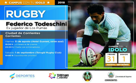 Deportes | En el marco del programa “Campus Con Tu Ídolo”, el ex jugador de la Selección Argentina de Rugby, (Los Pumas), Federico “Ninja” Todeschini, brindará este viernes 31 de agosto y sábado 1 de septiembre un módulo de capacitación de dos jornadas en Corrientes Capital....