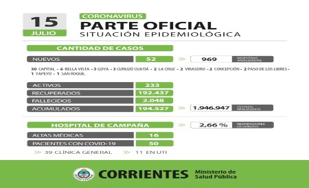 Corrientes registra 44 casos nuevos de Coronavirus