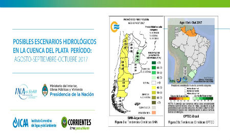 General | El Instituto Correntino del Agua y del Ambiente (ICAA) dio a conocer el informe del Instituto Nacional del Agua (INA) respecto a los posibles escenarios hidrológicos en la Cuenca del Plata durante el período agosto-septiembre-octubre de 2017....