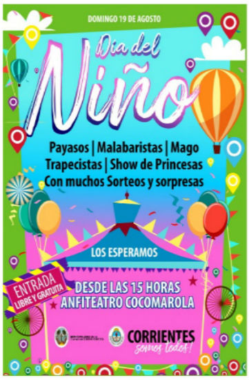 Política | Debido a las inclemencias climáticas, la fiesta por el día del niño que el Gobierno provincial y la Municipalidad de Corrientes iban a realizar conjuntamente en el Anfiteatro Cocomarola a las 15 se reprogramó para mañana lunes 20 en el mismo horario y lugar....