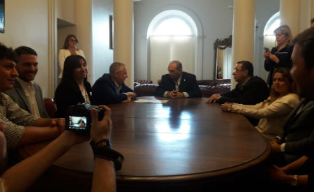 Política | En la delegación del Ministerio de Industria, Trabajo y Comercio de Gobernador Virasoro, los nuevos inversores de la empresa Tapebicuá y los cerca de 500 trabajadores que aguardaban por alcanzar un acuerdo que garantizara sus puestos de trabajo.