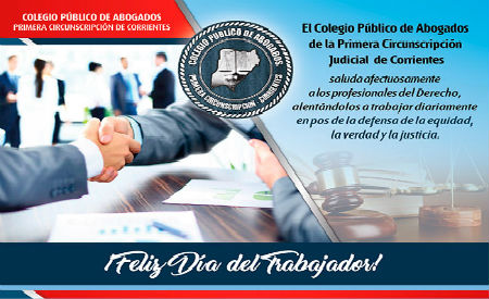 Política | El Colegio Público de Abogados de la Primera Circunscripción Judicial de Corrientes saluda afectuosamente a los profesionales del Derecho, alentandolos a trabajar diaramente en pos de la defensa de la equidad, la verdad y la justicia....