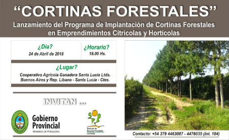 Política | Como parte de una nueva visión para hacer frente, desde la prevención, a los recurrentes eventos climáticos que afectan a la actividad productiva, el Ministerio de Producción presentará el próximo martes 24 de abril, en Santa Lucía, el programa provincial de "Implantación de Cortinas Forestales en cultivos Citrícolas y Hortícolas"....