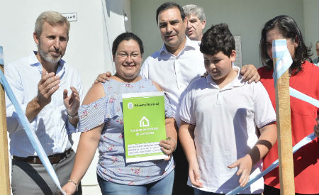 Junto a Frigerio, Valdés entregó 50 viviendas y anunció la construcción de un Parque Industrial