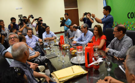 Política | En la delegación del Ministerio de Industria, Trabajo y Comercio de Gobernador Virasoro, los nuevos inversores de la empresa Tapebicuá y los cerca de 500 trabajadores que aguardaban por alcanzar un acuerdo que garantizara sus puestos de trabajo.