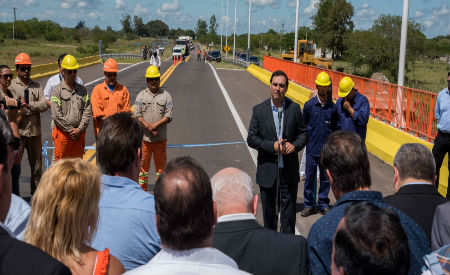 Valdés junto a Iguacel concretó la inauguración del nuevo puente del Paso San Juan en la Ruta 12