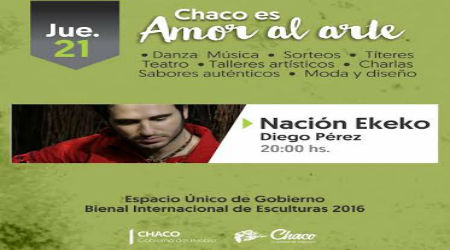 General | Este jueves, continuando la agenda planificada en el Espacio único que el Gobierno provincial tiene en la Bienal Internacional de Escultura 2016 se ofrecerá música, teatro, arte, gastronomía, moda y un cierre de lujo con el recital de Nación Ekeko....
