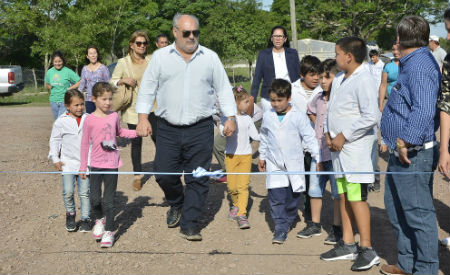 Colombi inauguró el SUM de la Escuela 825 y enripiado en paraje Monte Florido