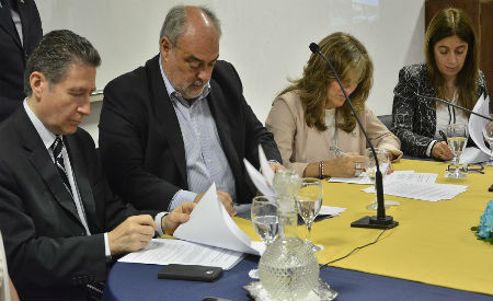 Política | En la delegación del Ministerio de Industria, Trabajo y Comercio de Gobernador Virasoro, los nuevos inversores de la empresa Tapebicuá y los cerca de 500 trabajadores que aguardaban por alcanzar un acuerdo que garantizara sus puestos de trabajo.