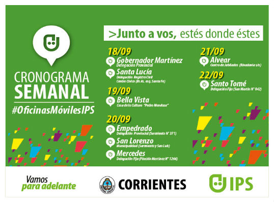 Política | En la continuidad del trabajo en terreno, la Interventora del Instituto de Previsión Social Lorena Lazaroff, determinó el cronograma de oficinas móviles para esta semana que arrancarán este lunes en la localidad de Gobernador Martínez y Santa Lucía....