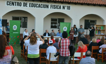 Política | En la tarde de este jueves se realizó el acto de inauguración de obras en el Centro de Educación Física N° 18 consistentes en muro perimetral, iluminación y adecuación de las instalaciones a la vez que se entregaron mobiliarios escolar (pupitres, escritorios, sillas y estantes para libros) y equipamientos áulicos (administrativos y deportivos)....