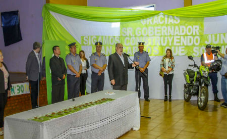 Política | El gobernador de la Provincia, Ricardo Colombi encabezó la entrega de viviendas construidas por el INVICO, y de dos motocicletas para la Comisaría local, oportunidad en la que anunció que se empiezan a construir 30 nuevas unidades habitacionales para la localidad, el acto se desarrolló en el Polideportivo Municipal....