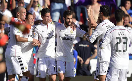Deportes | Con dos goles de Ronaldo, uno de "Chicharito" Hernández, otro de James Rodríguez y el último de Isco, el conjunto "Merengue" se impuso por 5 a 0 y quedó como escolta de Barcelona...