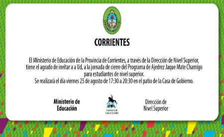 Política | En el patio de la casa de Gobierno concluirá mañana, viernes 25, el programa provincial de ajedrez “Jaque Mate Chamigo”, que se desarrolló a través de la Dirección de Nivel Superior del Ministerio de Educación con la participación de estudiantes de diferentes establecimientos educativos....