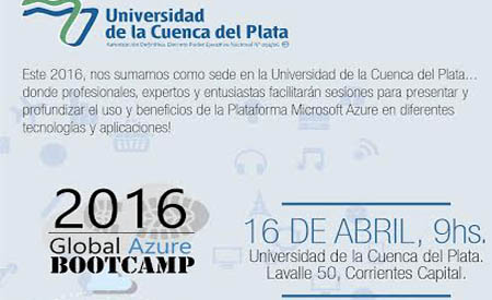 General | La Universidad de la Cuenca del Plata será sede del Global Azure Bootcamp 2016. Será la primera vez que este encuentro se realice en una sede que no sea la capital federal....