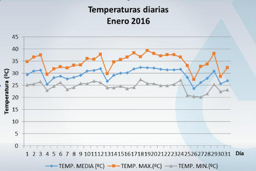 General | El Instituto Correntino del Agua y del Ambiente (ICAA) informó los datos mensuales de enero de 2016, registrados por la Estación Meteorológica Automática instalada en la sede del Instituto Correntino del Agua y del Ambiente (ICAA), en el barrio Libertad de esta Ciudad...