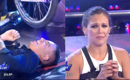 General | El campeón de Bailando 2015 y su novia tuvieron que cantar rodeados de deportistas extremos haciendo piruetas de alto riesgo