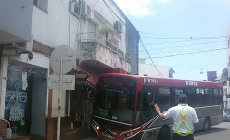 Salta y 9 de julio: un colectivo rompió la dirección e impactó sobre un negocio