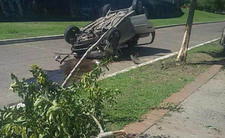 General | Dos personas resultaron heridas tras volcar en un auto en la bajada del puente, por la avenida Pedro Ferré frente a la plazoleta Belgrano....