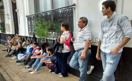 General | Desde cerca de las 6 de la mañana estudiantes secundarios y tutores realizan imcomprensibles colas en una conocida casa de eventos para comprar entradas para las fiestas de recepción y las cenas de estudiantes. Todos coincidieron en la molestia que ocasionó que los organizadores recién decidan poner en venta las entradas en las últimas horas....