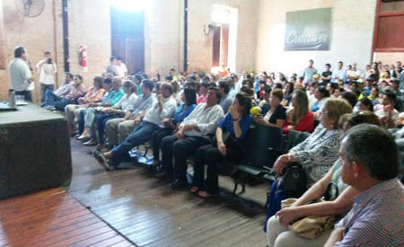 Política | En la delegación del Ministerio de Industria, Trabajo y Comercio de Gobernador Virasoro, los nuevos inversores de la empresa Tapebicuá y los cerca de 500 trabajadores que aguardaban por alcanzar un acuerdo que garantizara sus puestos de trabajo.