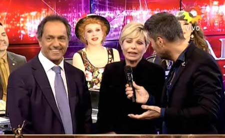 General | El candidato a presidente por el Frente para la Victoria estuvo con Karina Rabolini en el programa de Marcelo Tinelli