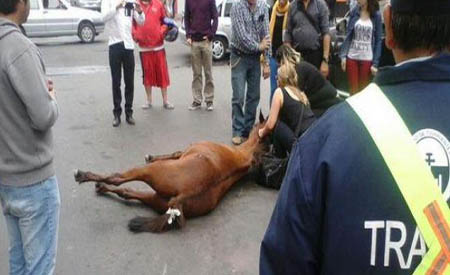 Caballo se desplomó en la calle por cansancio