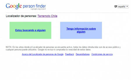 General | El buscador puso a disposición del público Person Finder, que tiene como objetivo ubicar a aquellos individuos de los que no se tiene información. La red social Facebook hizo algo similar...