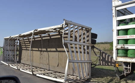 Pudo ser tragedia: de un camión con acoplado cayeron 795 tubos de gas