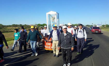 General | Cerca de las 07,30hs, partió de la Imagen de la Virgen desde la Jefatura de Policía -Quintana N° 853-, para concentrarse en la zona de El Águila, donde comenzaron su peregrinar, teniendo sus paradas para desayunar y almorzar en el Paradero.